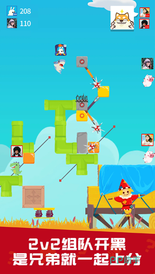采用物理引擎驱动的搞笑闯关玩法,最多支持四人同屏协作。角色造型夸张醒目,动作反馈滑稽真实。关卡设计充满陷阱机关,需依靠跳跃、抓钩、推拉等交互操作共同推进。紧张节奏搭配即时语音交流,大幅提升沉浸感与欢乐指数。