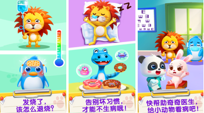针对学龄前儿童常见就医焦虑,该应用构建安全、可预测的医疗情境体验。玩家可切换医生与患者双视角,处理发烧、咳嗽等基础健康问题,熟悉体温计、听诊器等器械功能,并了解分诊、挂号、检查等流程。多科室环境设置与拟真音效协同营造沉浸氛围,在降低心理抵触的同时,潜移默化传递卫生习惯与身体认知知识。