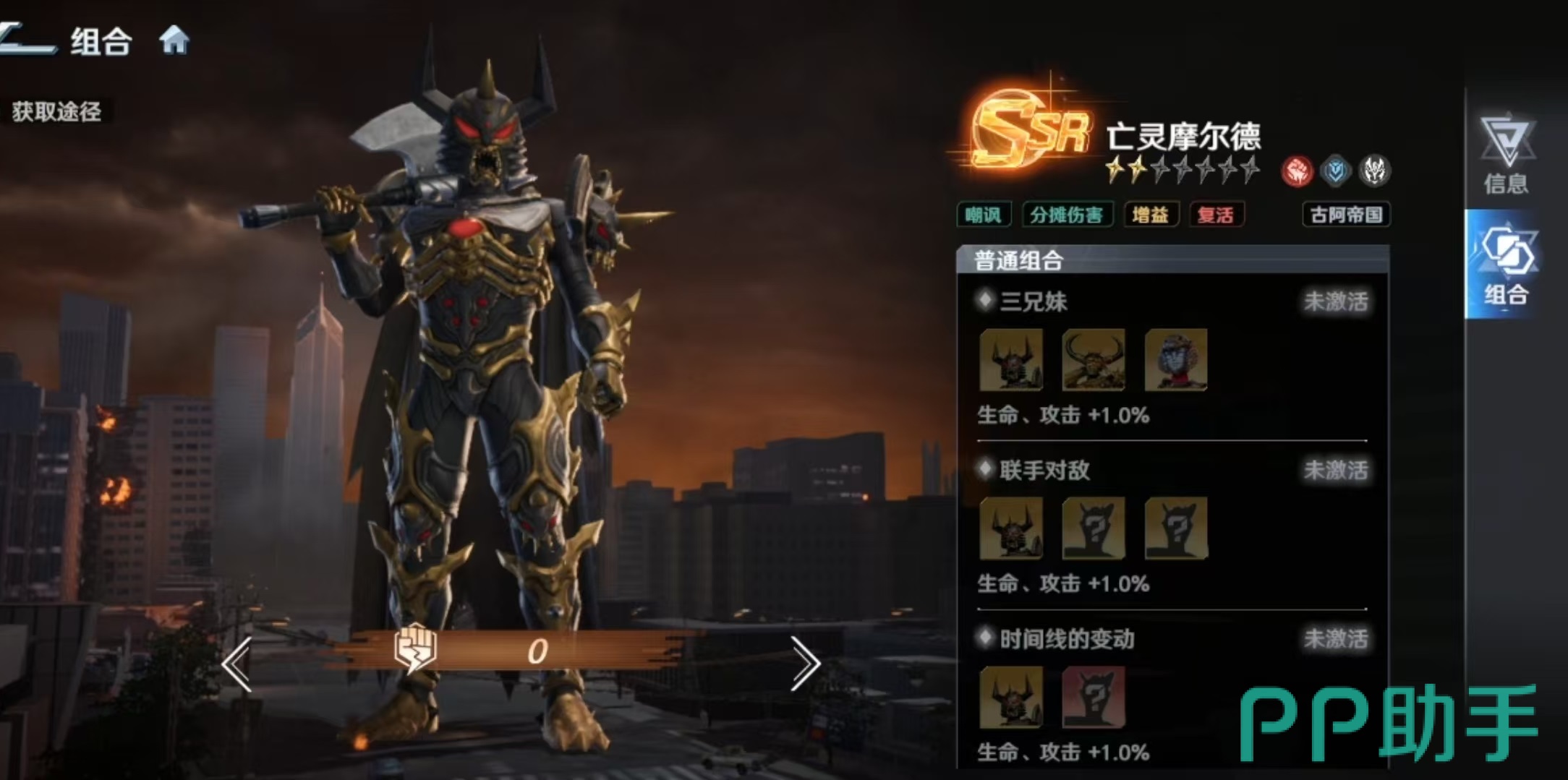 基于上述机制,亡灵摩尔德天然适配古阿帝国纯阵营体系。推荐核心组合为:亡灵裘达、亡灵基纳、亡灵摩尔德——三位角色共享“卷土重来”被动,构成死亡轮换式续航结构,极大提升阵容容错率。搭配黑暗扎吉(高频输出+异常状态叠加)与芝顿(稳定AOE补伤),可组建一支兼具压制力、反打能力与持续作战能力的全怪兽流派。该体系在面对高爆发或单点强杀阵容时表现尤为突出。