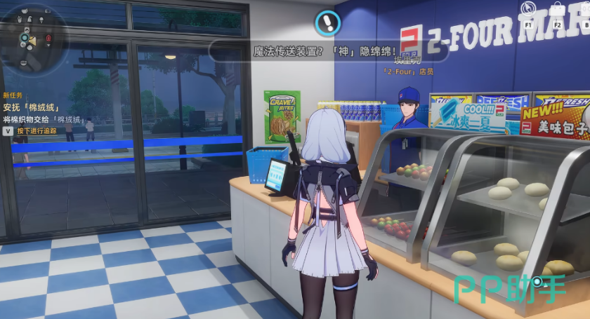 任务启动必须前往地图中的便利店场景,与NPC埃里克完成对话。该便利店位置明确,易于识别。仅当玩家正式接取“魔法传送装置”任务后,棉绒绒才会在指定区域生成。跳过此步骤将导致后续所有搜索行为无效,因此务必确保任务已激活。