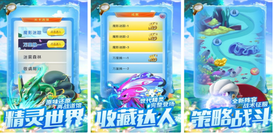 基于正版IP打造,融合收集、养成与策略布阵等多元玩法。游戏中包含200余种属性各异的宝可梦,每只精灵拥有独立技能体系与战场定位,需结合属性克制逻辑进行阵容搭配,强调战术深度与长期养成规划。