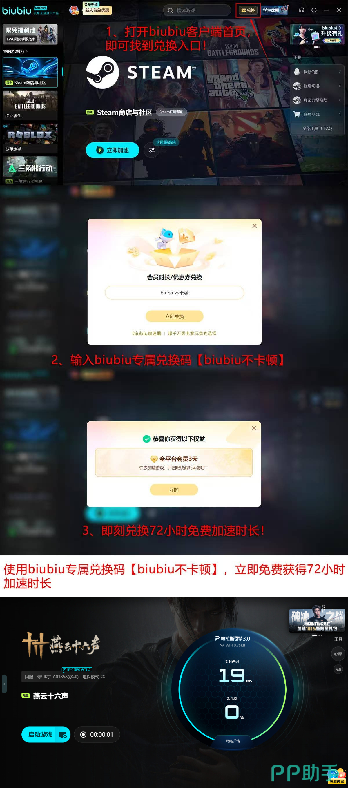 新用户专属福利已正式开放:注册即享首日24小时无门槛加速权限;输入激活码【biubiu不卡顿】,可额外获得72小时连续加速服务;两项权益叠加后,总计可畅玩96小时,全程零卡顿、零中断,尽享丝滑武侠之旅。