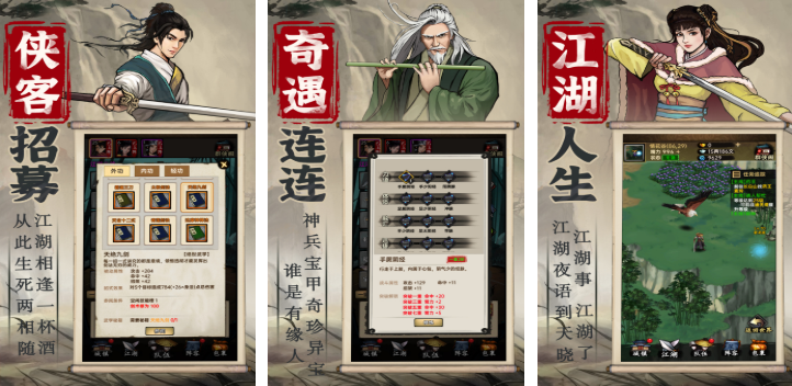 以写实笔触还原古典武侠氛围的轻量级RPG,强调事件驱动型叙事与动态成长体系。玩家通过收集神兵(如倚天剑、屠龙刀)、研习武功(含九阴真经、降龙十八掌等原著招式)提升战力,任务链设计拒绝固定脚本,每次进入世界均可能触发不同NPC对话、隐藏支线或阵营抉择。招募系统支持多维筛选——按属性、流派、出身地域匹配侠客,组队后可触发专属合击动画与剧情彩蛋。