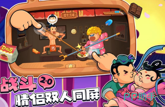 这是一款节奏明快、互动感强的双人对抗休闲游戏。玩家分别操控角色,使用“戳子”向对方投喂食物,目标是让对手率先达到“吃撑”状态而落败。操作简单但策略性强,特别适合异地情侣在视频通话中同步开启指尖对决,用轻松氛围缓解思念压力。