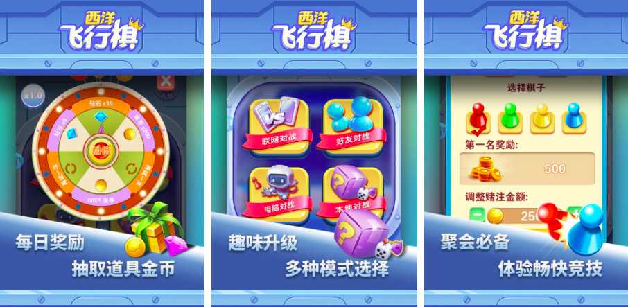 主打轻社交+快节奏玩法,首创“极速模式”:单局时长压缩至3分钟内,骰子自动投掷、棋子自动移动,大幅降低操作门槛。支持快速建房功能,可一键生成私人房间并分享邀请码,实现小范围好友约战。内置“派对彩蛋”系统,连胜或达成特殊成就后解锁趣味音效、动态头像框及限定棋子皮肤。每日参与大转盘活动,可兑换金币、皮肤碎片及稀有棋盘背景。