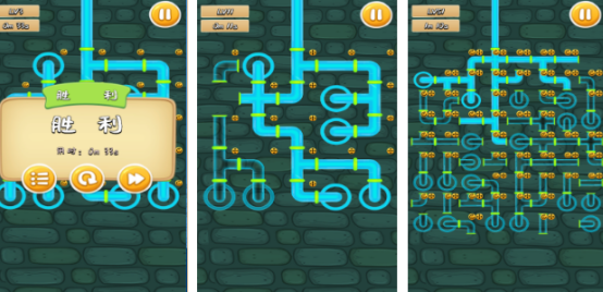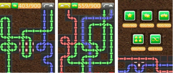 主打轻量化交互体验,依托触控精准识别技术,单次点击即可完成90°管道转向,适配碎片化场景。美术采用低饱和度卡通渲染风格,配合平滑3D建模与拟真接口咬合反馈,强化操作真实感。关卡结构由线性教学过渡至含动态障碍(如周期性闭合阀门、随机位移节点)的复合型布局,兼顾新手友好性与中高阶策略延展空间。
