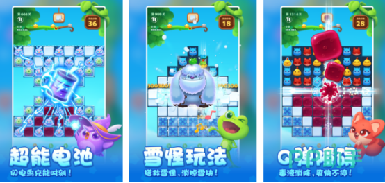 延续高水准关卡架构,总关卡数突破9000关,包含常规目标关与隐藏剧情关双线模式。挑战类型涵盖分数达标、特定障碍清除、限定步数通关等多元目标,辅以磁力锤、彩虹豆、火焰特效等策略道具系统。角色叙事模块采用碎片化温馨短剧形式,增强长期游玩情感联结。