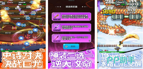 本作采用竖屏操作界面,开场即呈现冰龙与火龙两大标志性角色。游戏深度融合Roguelike机制,玩家通过滑动与点击释放多段技能,踏上高自由度的屠龙征途。关卡中设有极具压迫感的巨型龙类BOSS战,配合多样武器系统与装备体系——涵盖普通、稀有、史诗至神级等多个品质梯度,支持个性化Build构筑。合理规划角色成长路线,是提升战力的关键路径。
