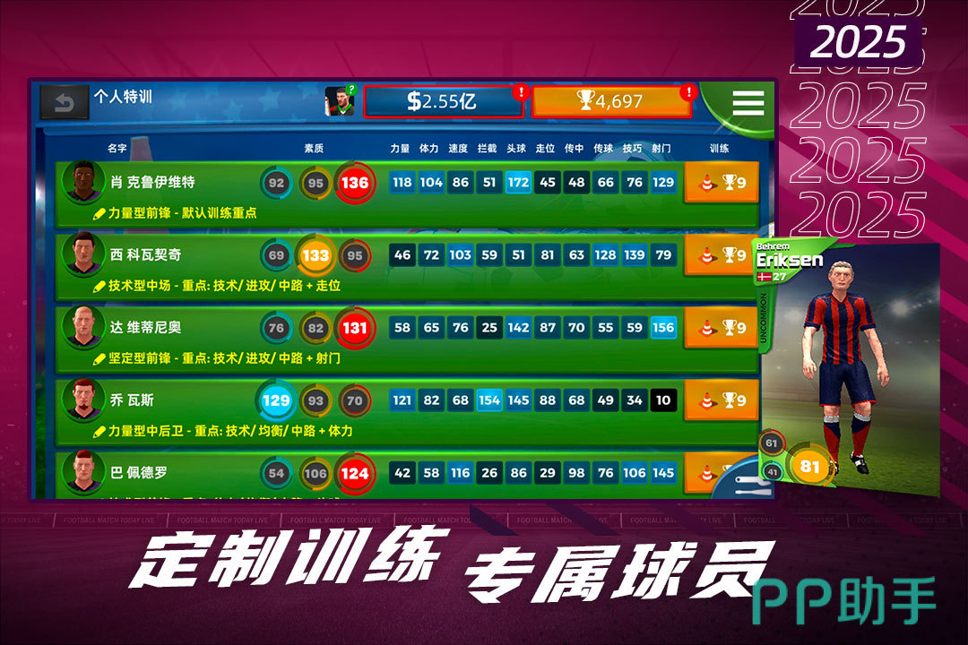 涵盖5000+真实球员资料,每位球员配备专属庆祝动画及差异化技能树;邀请职业运动员参与动作设计,完整复刻停球、转身、假动作等脚下细节;潜力成长系统支持长期养成,结合欧冠、世界杯等顶级赛事IP,提供多维度战术适配方案——根据对手阵型动态调整攻防重心与球员职责分配。
