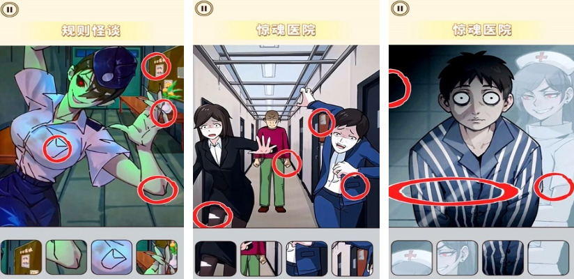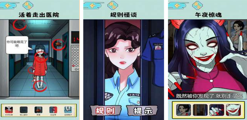 本作采用场景化叙事结构,以多维度诡异空间为舞台,构建层层嵌套的谜题系统。玩家需通过观察画面元素、比对文字提示、定位关键道具完成逻辑闭环,每一步操作都受制于隐性规则约束。通关过程强调细节敏感度与跨线索联想能力,是典型“轻操作、重思考”的规则驱动型解谜体验。