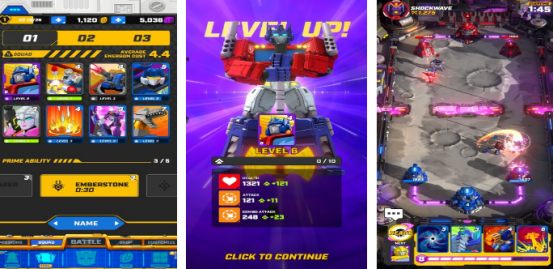 本作采用高精度3D建模呈现数十款经典变形金刚角色,涵盖擎天柱、威震天等核心人物。玩家可自由组建六人作战小队,在实时PVP对战、跨服竞技场及限时挑战副本中展开多维度对抗。每位角色配备专属技能树与变形形态切换逻辑,战斗中依据地形高低差、掩体分布及敌人阵型变化,灵活调用战术指令实现战局逆转。