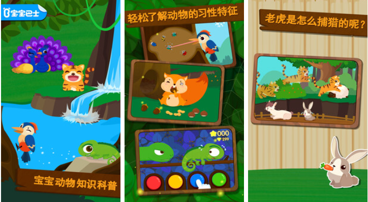 以森林生态为背景的认知拓展应用,涵盖20余种常见野生动物形象,每种动物配有真实叫声采样、栖息地简图及基础习性说明(如“松鼠爱存坚果”)。交互方式包括点击发声、滑动匹配栖息地、轻摇设备触发动物互动等,所有操作响应时间≤0.3秒,适配婴幼儿肌肉控制水平。地图采用分层渐进式展开设计,避免信息过载。