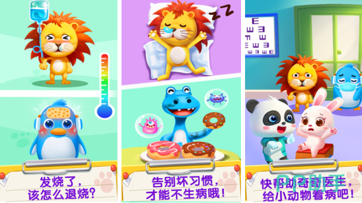 专为低龄儿童设计的医疗主题启蒙游戏,通过拟真但简化的诊疗流程(如听诊、包扎、喂药),帮助幼儿建立初步健康意识与身体认知。所有交互动作仅需单点触控,无文字依赖,配合动物角色演绎降低理解门槛。内置安全提示音与正向反馈机制,强化行为引导效果,画面采用低饱和度暖色调,有效保护婴幼儿视觉发育。