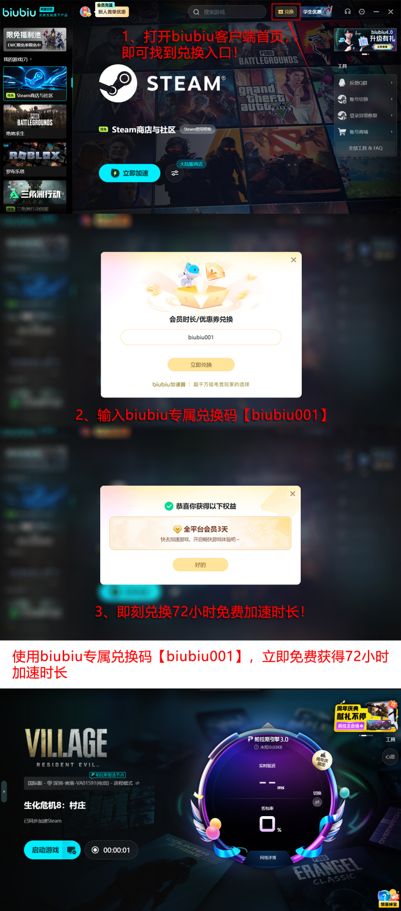 该加速器已通过职业电竞场景验证——PUBG冠军选手小叮当XDD担任品牌代言人,Pero电子竞技俱乐部将其列为官方指定加速工具。依托帕拉斯3.0引擎与阿里巴巴灵犀互娱技术支撑,其加速效能具备工程级可靠性。当前新老用户均可享受多重免费权益:访问加速器官网页面后,复制通用激活码【biubiu001】即可领取3天全功能使用权;首次注册并完成登录的新用户,额外获赠24小时专属加速礼包。两项权益叠加使用,最高可享96小时零费用体验周期。