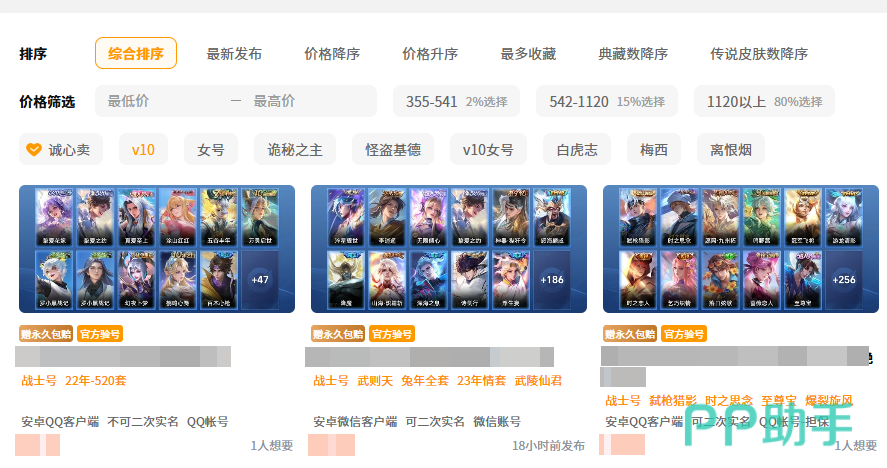 除智能估价外,平台还构建了多层交易保障体系:所有上架账号均标注“永久包赔”标识,交易全程受平台资金监管;账号详情页同步展示实名认证状态、设备绑定记录、异常登录预警等关键标签;同时,交易猫与九游、biubiu加速器同属阿里巴巴灵犀互娱旗下产品矩阵,依托集团技术中台与游戏生态资源,在王者荣耀账号库存量、品类覆盖度及数据更新频次方面具备显著优势,已实现全英雄、全皮肤、全段位等级的结构化数据支持。
