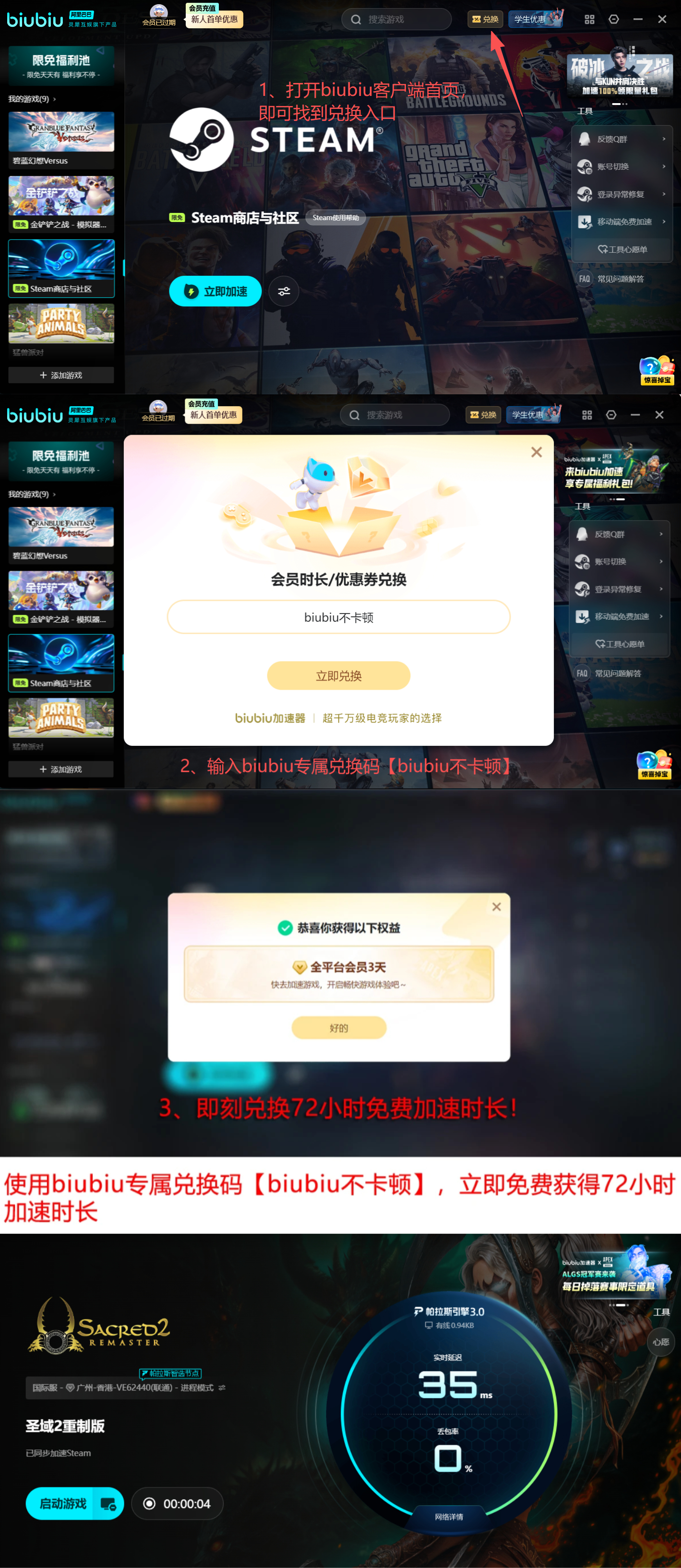 针对上述痛点,biubiu加速器提供跨平台兼容解决方案,全面支持Steam、PlayStation、Xbox及Nintendo Switch四大主流平台。其操作逻辑高度简化:用户仅需在主界面搜索“圣域2重制版”,或进入对应平台分类,点击“一键加速”,系统即自动匹配最优中继节点并完成隧道建立。该流程大幅降低使用门槛,无论身处国内局域网环境,还是参与海外服务器联机,均可实现毫秒级延迟收敛与丢包率压降至0.3%以下,从根本上规避因网络信号中断引发的非预期掉线。