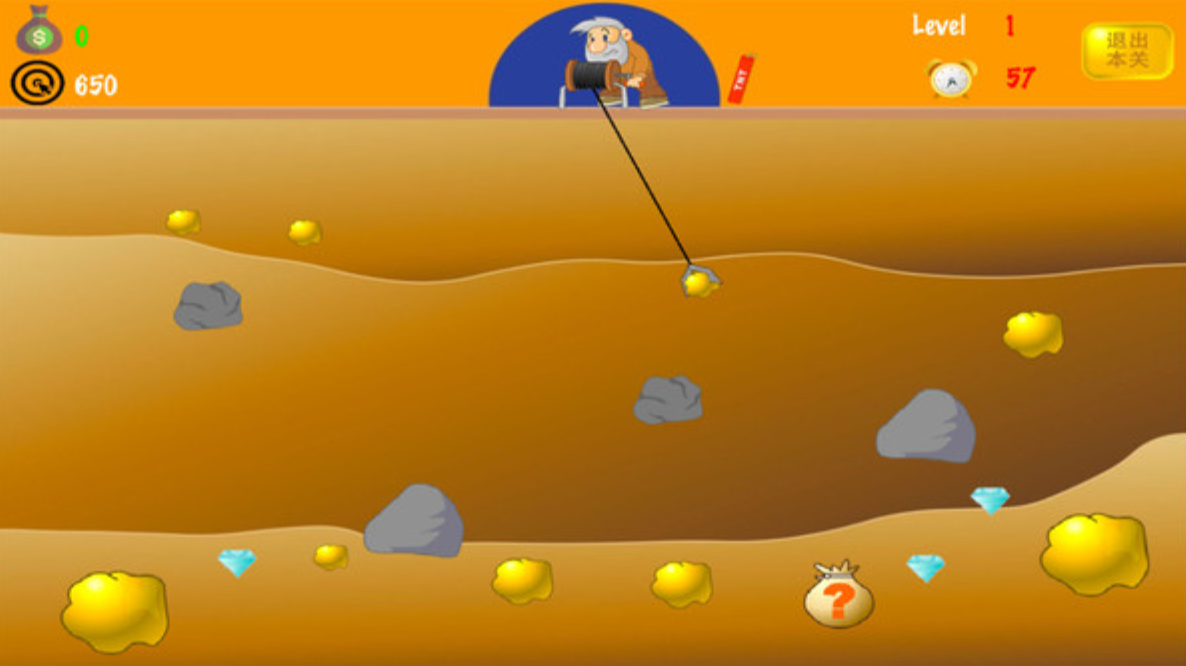 本作还原经典玩法内核:在倒计时中精准操控钩爪,从岩层中攫取高价值资源。不同重量矿石直接影响拉回速度,大石块需消耗炸药清除;关卡结构兼顾时间压力与目标分数,道具系统提供强化绳索与幸运水,适配多变矿脉地形与动态物理反馈。