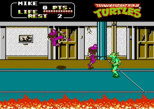 基于同名美漫IP改编,《忍者神龟2》在FC平台实现了高完成度的动作表现。玩家可切换四只神龟,每只龟对应不同主武器(双叉、长棍、双刀、钢叉),武器攻击距离、攻速与破防能力存在显著差异。关卡采用非线性探索结构,隐藏区域包含恢复道具与强化装备,Boss战融入阶段转换机制,如施莱德需在不同形态间切换应对,彩蛋内容覆盖原作经典桥段与配音台词。