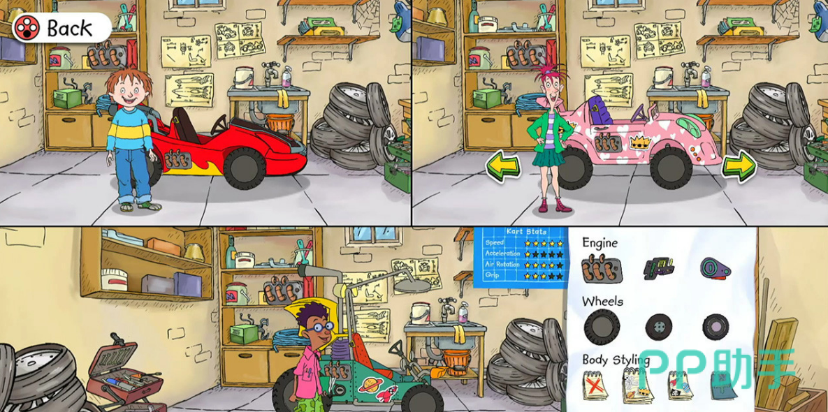 改编自同名绘本IP的横版竞速游戏,整体美术采用手绘质感风格。关卡设计围绕恶作剧主题展开,包含追踪导弹、定时炸弹等互动式障碍,考验玩家预判能力。跳台机制引入空中转向与滞空操作,增强动作维度。原创摇滚配乐配合角色语音,营造明快诙谐氛围。内置卡丁车工坊支持外观部件自由组合,通关解锁的迷你小游戏可兑换专属道具。