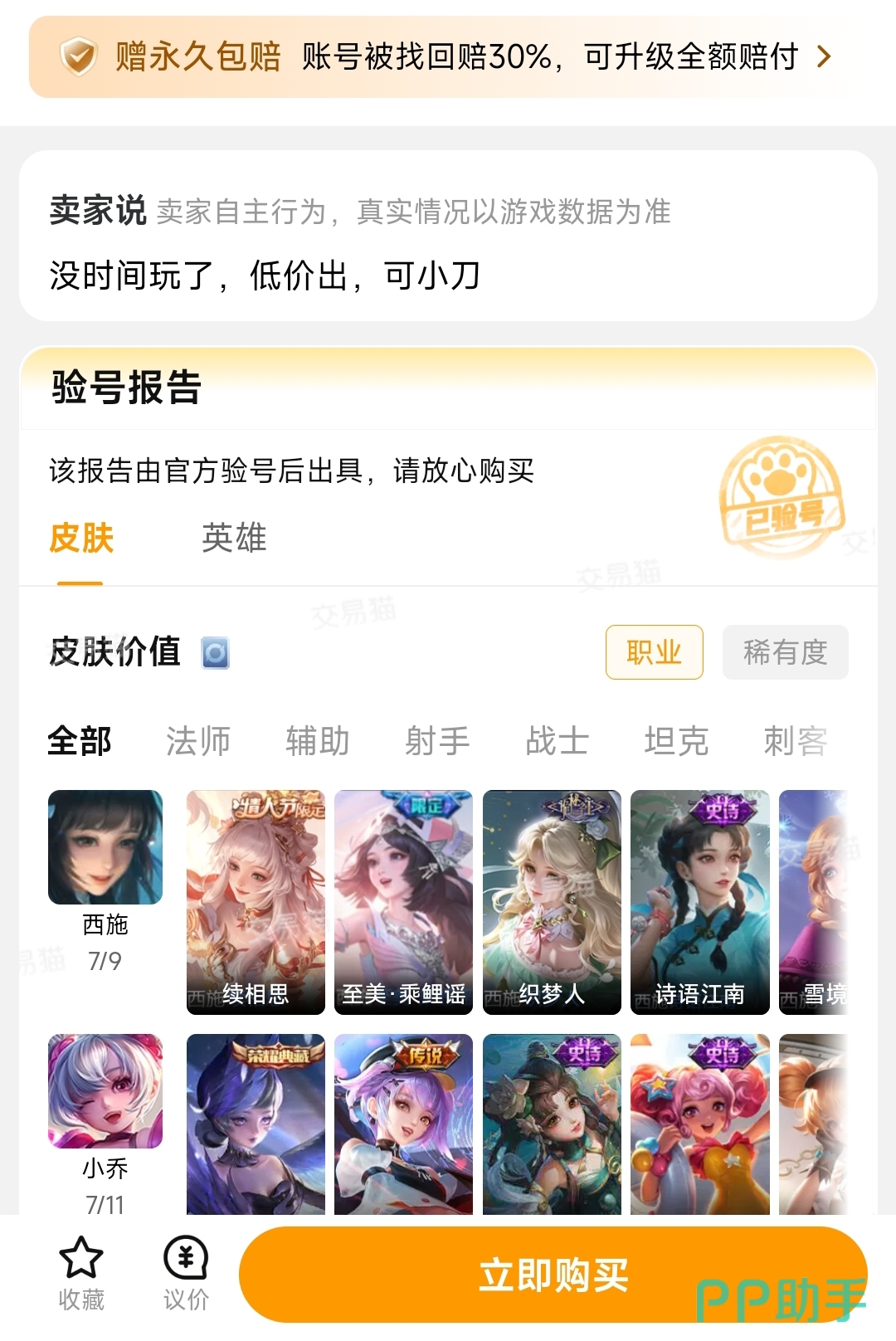 安卓用户可通过官方渠道直接安装应用,iOS用户则建议使用Safari或其他浏览器访问交易猫官网完成下载。账号的实际估值,核心取决于所拥有的限定款皮肤数量及珍稀英雄数量——这两项指标越多,整体市场溢价空间越大。正因如此,平台的安全性、验号专业度与资金保障机制,就显得尤为关键。交易猫作为阿里巴巴灵犀互娱旗下重点运营的游戏服务APP(同属该体系的还有九游、biubiu加速器),是目前业内唯一提供全场【永久包赔】服务的账号交易平台,在交易履约与风险兜底方面具备显著优势。