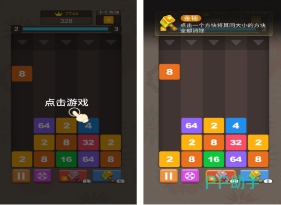 融合2048数字合成逻辑的轻量化消除游戏,界面简洁适配单手操作。玩家通过滑动合并相同数字方块(2→4→8→16……),不断达成更高数值目标并刷新分数纪录。关卡内置时间挑战、步数限制与特殊障碍,辅以炸弹、彩虹砖、冻结等道具系统,提升策略深度与通关成就感。