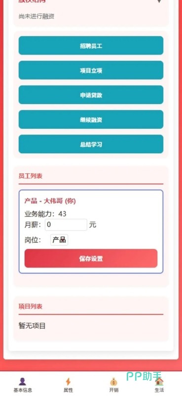 扮演着游戏里面最普通的员工,从自己的打工积累资金开始起步,创办自己的公司,从而招募到更多的员工,不断地扩大自己的企业规模即可,《AI创业模拟器》这款手游里面的十几种不同而专业技能的发展向度,培养职员们成为专业的人才即可,还会有着多重的经营挑战。