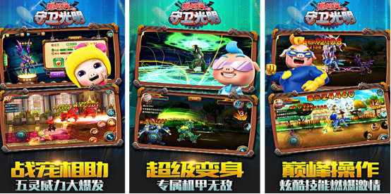 以守护光明能量为核心叙事主线,采用即时动作战斗系统。玩家可在战斗中无缝切换猪猪侠、菲菲、超人强等五位主角,每位角色具备独立连招链、闪避机制与蓄力终结技。宠物系统提供护盾生成、仇恨转移与范围控场三类辅助能力,关卡含动态地形破坏与Boss阶段转换机制。