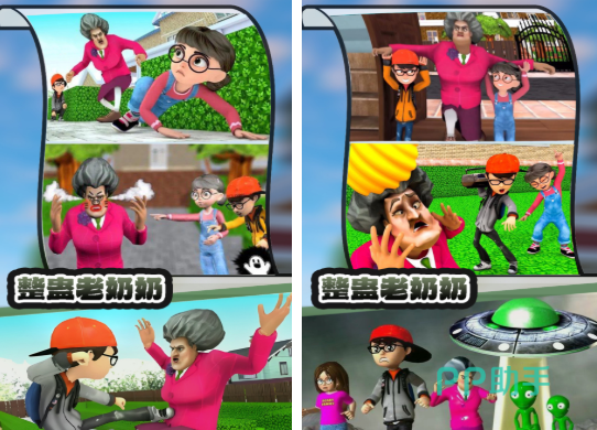 这是一个比较另类的整蛊题材,主角是调皮的孙子,而隔壁则住着一个爱管闲事的老奶奶。角色的形象很魔性,穿着粉色衣服的老奶奶,辨识度比较高,整个游戏的玩法很轻松,会有花样百出的整蛊方式,例如把老奶奶的老花镜藏起来,或者在饭里面加辣椒。关卡解锁新的场景,从一开始的客厅到后期的院子,调皮捣蛋的范围会越来越大。