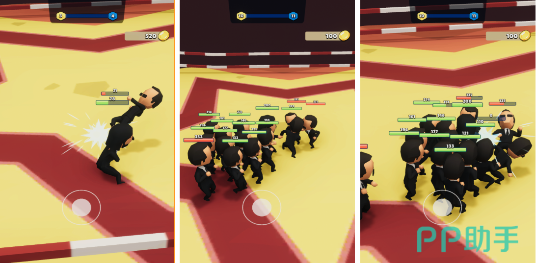 一款竖屏单手操作的策略型格斗闯关游戏。玩家指挥黑衣小队发起围攻,击败对手后可将其吸纳至己方阵营,逐步扩大战力规模。关卡设计融合地形机关与敌人AI行为逻辑,配合夸张滑稽的动作演出与节奏紧凑的连击反馈,形成兼具成长性与娱乐性的“吞噬式”战斗循环。