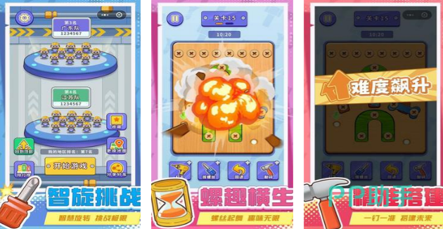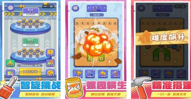 想做个手艺人,要做的第一件事就是摸透这些螺丝的门道,把拧螺丝,装螺丝的动作都练熟记牢。把木板上所有螺丝都取下来之后,还得对木板进行拆分,要把木板的各个结构部分全都拆干净,做到这一步才算顺利过关。木板掉落时真实的物理反应,会在玩家拧螺丝,拆螺丝的过程中自然呈现。游戏的难度从简单到复杂提升,节奏也是循序渐进的。