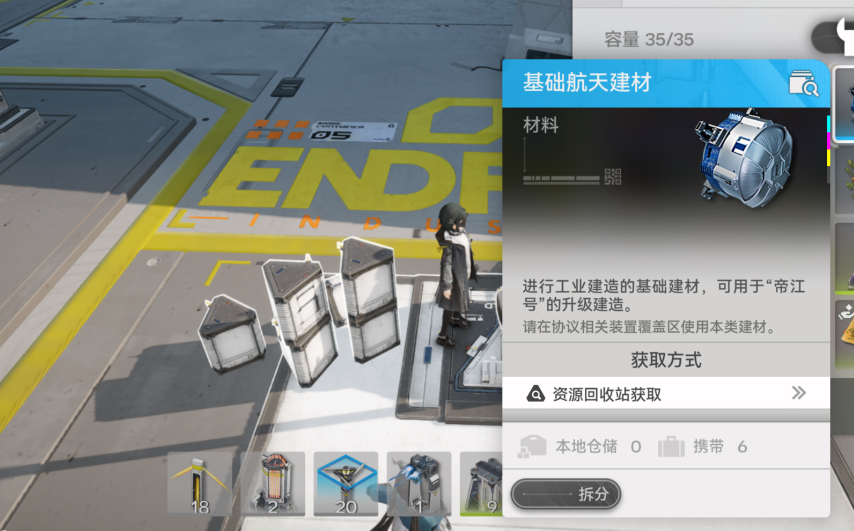 小伙伴们在玩游戏的时候会发现,在你体验游戏中模拟经营部分的玩法时,会需要消耗很多资源,才能够升级移动基地帝江号,而这些资源的产出主最主要的就是依赖这个资源回收站了。在这里产出的资源比较丰富,比如说精炼原矿和晶体外壳等组件,这些组件每6个小时会刷新一次,每天最多能够采集三次。采集完毕之后,小伙伴们就可以前往合成台,并进行航天建材的制作,制作一个建材需要消耗4分30秒,资源消耗为两个精炼原矿和一个晶体外壳。