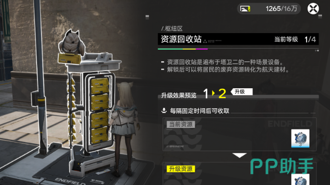 回收站是可以进行等级提升的,每提升一级可获得的道具品质也将会得到提升,直到最终提升至精炼,并且获得稀有资源的概率也会提升。但是升级回收站需要消耗一个叫做调度券的资源,如果说你手中的调度券不足的话,可以前往难民据点,然后和这里的NPC对话,消耗你手中的任意物资来获得调度券,比例为1:1。