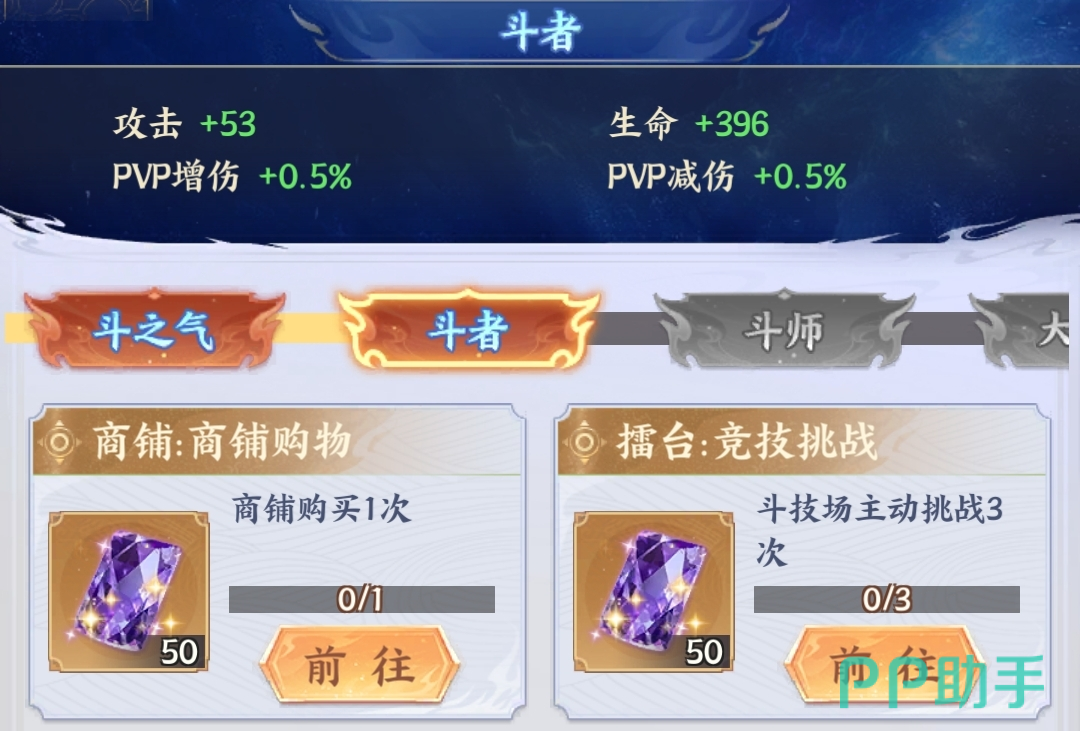 该系统于主角等级6级时开放,通过完成各项提升任务,可为全体斗者附加属性增益。每项任务完成后均可获得【紫晶卡】,且日常修炼中同样可重复获取【紫晶卡】奖励。