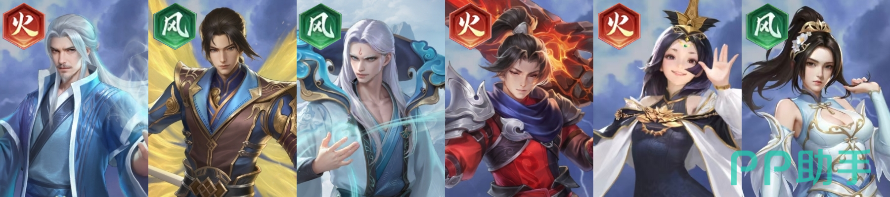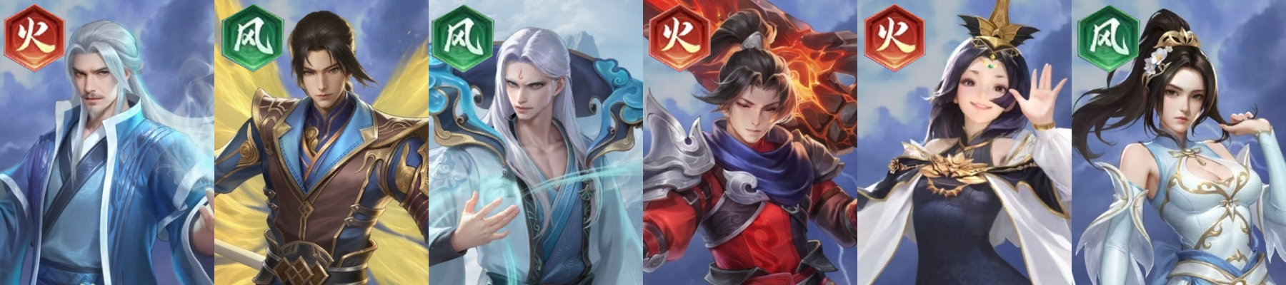 配置:药老(火)+林修崖(风)+云山(风)+少年萧炎(火)+夭月(火)+少年嫣然(风)