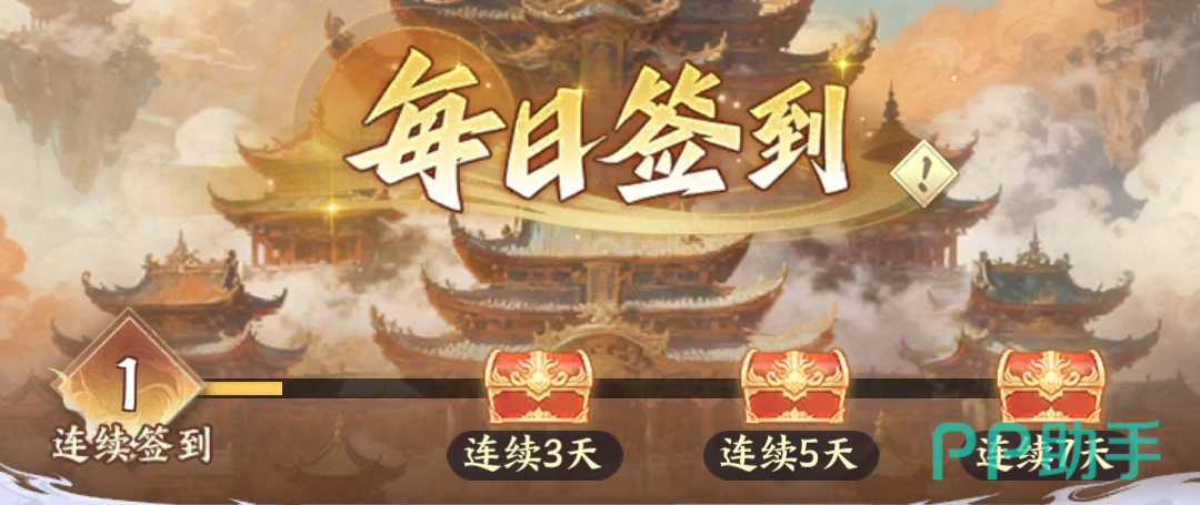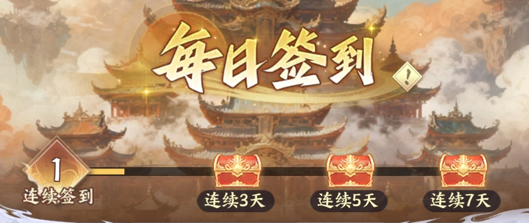 通过主城“福利”入口进入,每日登录即可领取【紫晶卡】、【征召玉兆】及紫色/金色【斗者碎片】;达成连续签到条件后还可开启连签宝箱,提升稀有资源获取率。