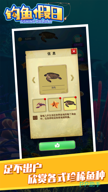 清新的卡通画面的风格演绎,还是可以为玩家们得到更多欢乐的体验,《钓鱼假日》这款手游的目标并没有强制性的要求,所以各位可以去按照自己的节奏,去领悟到休闲或者是挑战的体会,游戏当中的各种鱼竿配件,全部都可以升级,并且以此来打造自己专属的钓鱼用具的组合,适配玩家们的操作。