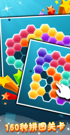 《六边形拼图》界面由许多六边形格子组成,玩家需要拖动不同形状的彩色方块,把它们严丝合缝地填满整个六边形区域,画面整洁,颜色舒服,玩起来需要一些空间想象和规划能力,但过程很安静,没有时间限制,免费益智皆可享,闲时消遣乐悠悠。