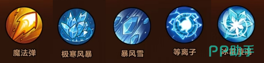 技能配置:魔法弹 + 雪径冲撞 + 极寒风暴 + 暴风雪 + 冰霜漩涡
