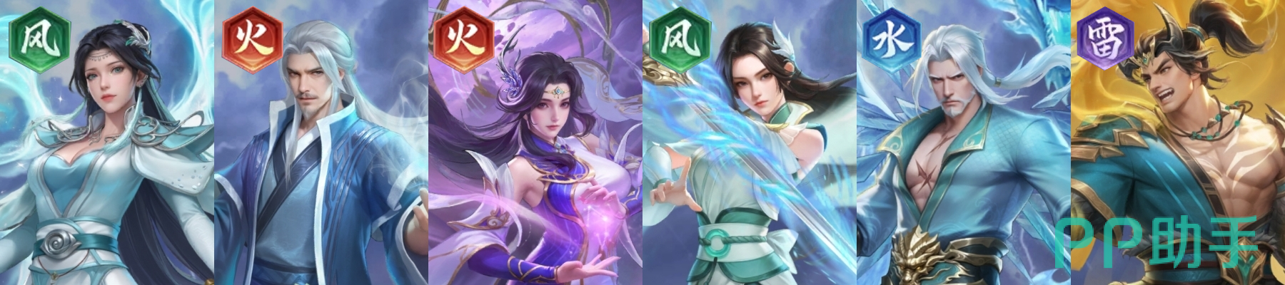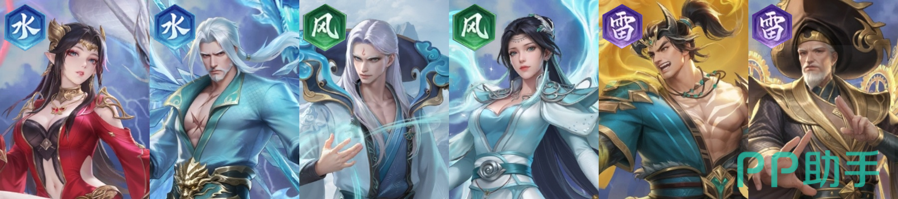 核心成员:美杜莎(水)+ 海波东(水)+ 云山(风)+ 云韵(风)+ 熊战(雷)+ 苏千(雷)