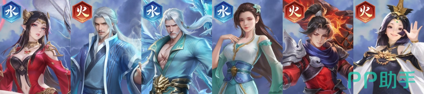 核心成员:美杜莎(水)+ 药老(火)+ 海波东(水)+ 若琳(水)+ 少年萧炎(火)+ 夭月(火)