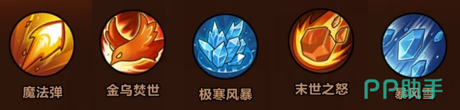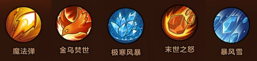 技能配置:魔法弹+金乌焚世+极寒风暴+末世之怒+暴风雪