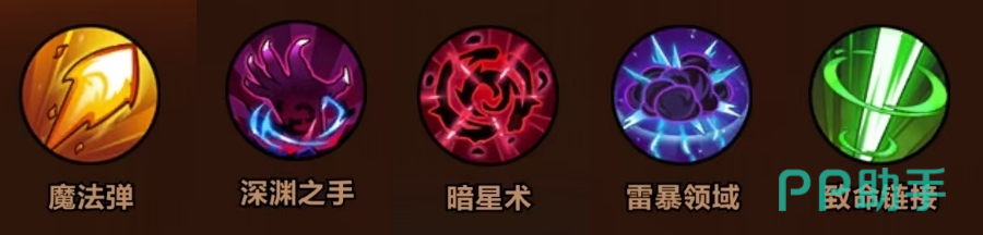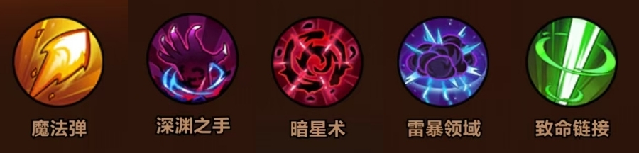 技能配置:魔法弹+深渊之手+暗星术+雷暴领域+致命链接