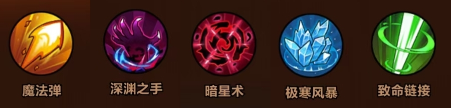 技能配置:魔法弹+深渊之手+暗星术+极寒风暴+致命链接