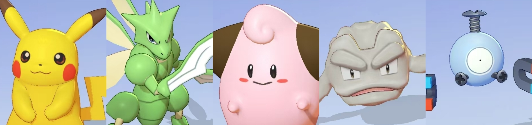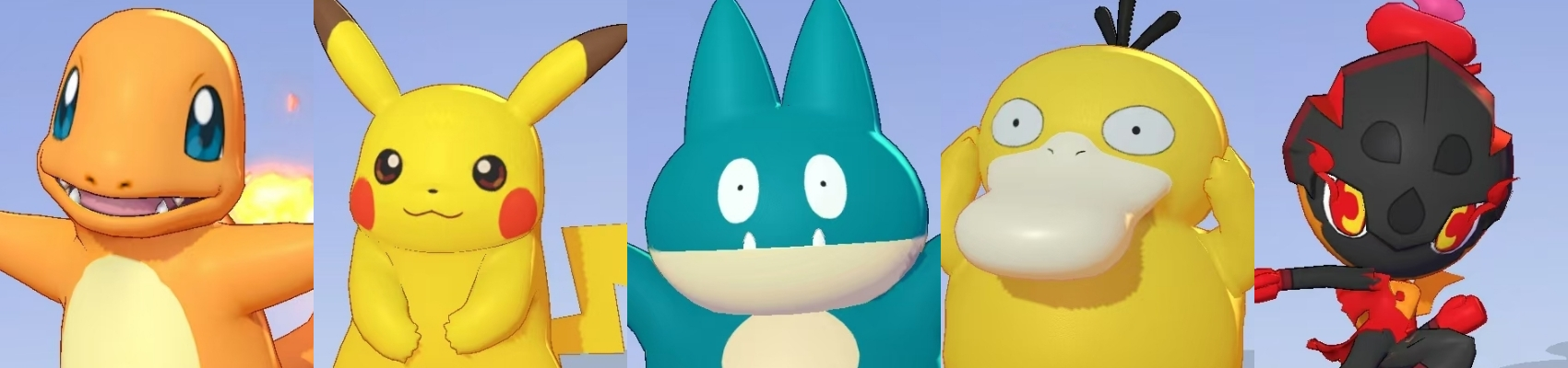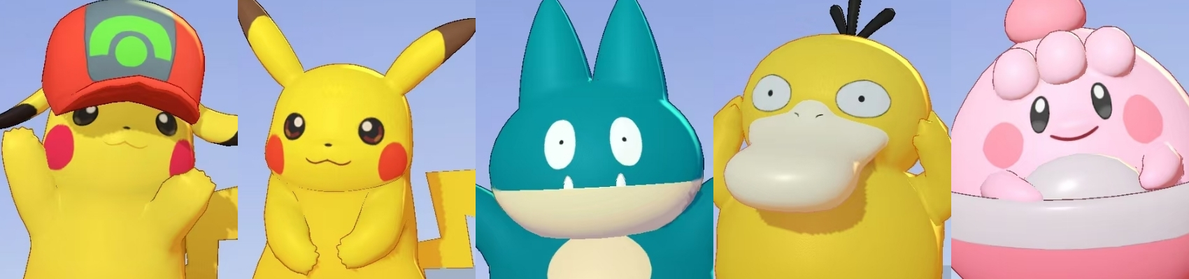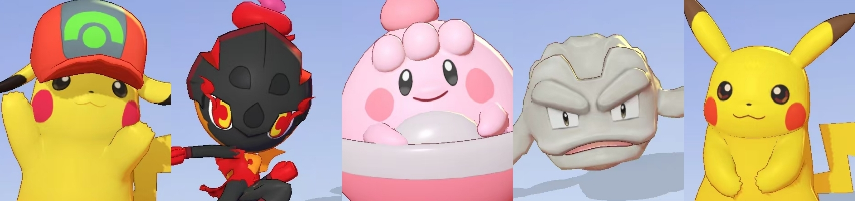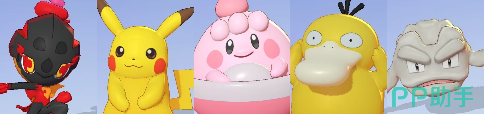核心构成:帽子皮卡丘 + 皮卡丘 + 小卡比兽 + 可达鸭 + 小福蛋