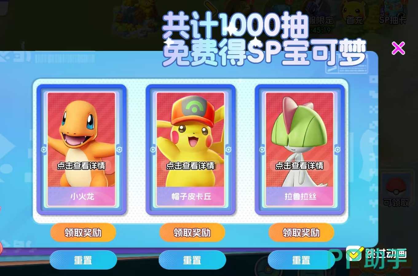 通关1-5后解锁,支持最多100次十连抽,每次必出SP宝可梦。系统保留最近三次十连结果供选择,选定后其余结果自动清除。推荐首选【帽子皮卡丘】或【小火龙】,二者均具备优秀群体输出能力,能显著提升推图效率。