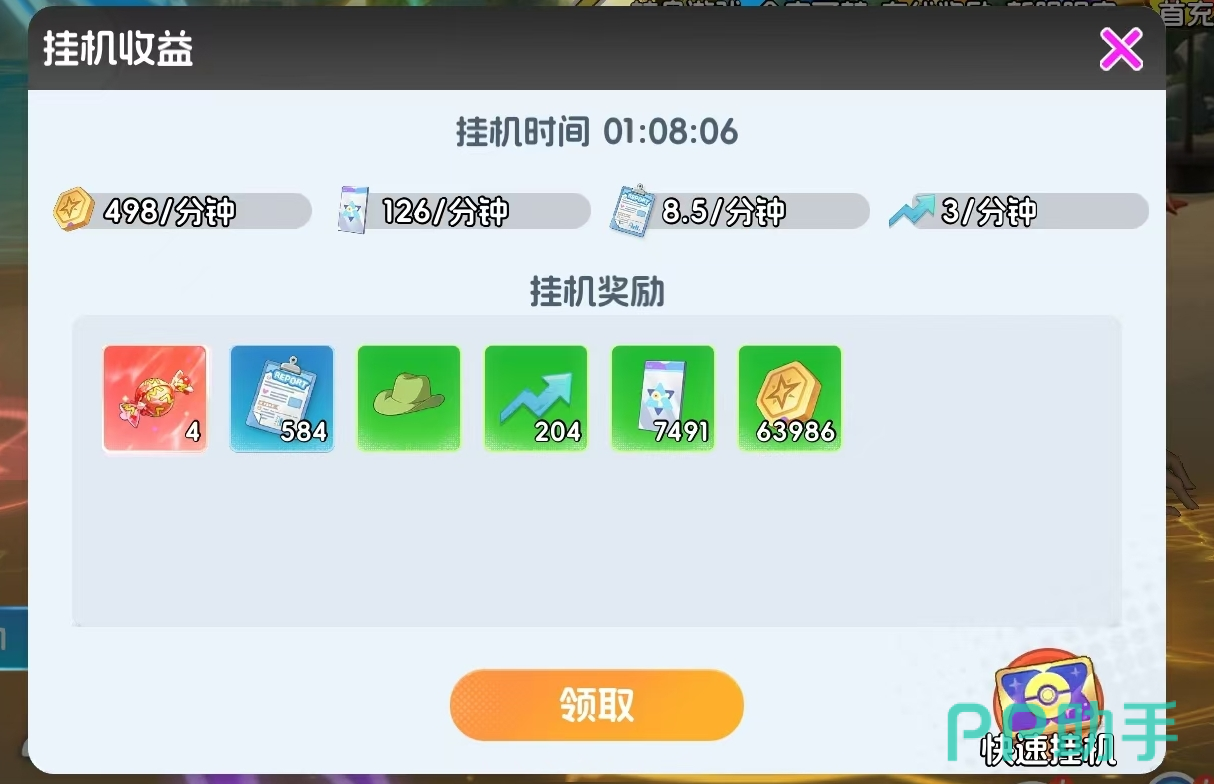 1、挂机收益(强制执行):通关探索关卡1-5后开启,收益随主线进度动态增长,每日需点击“快速挂机”领取两小时累计产出。