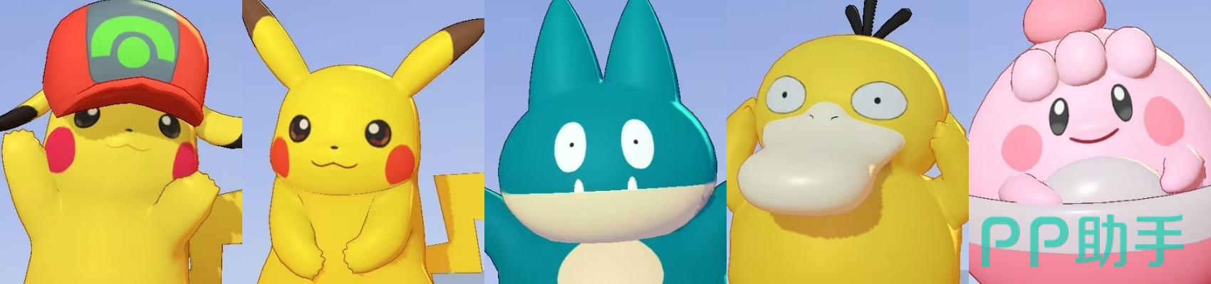 推荐组合:帽子皮卡丘 + 皮卡丘 + 小卡比兽 + 可达鸭 + 小福蛋