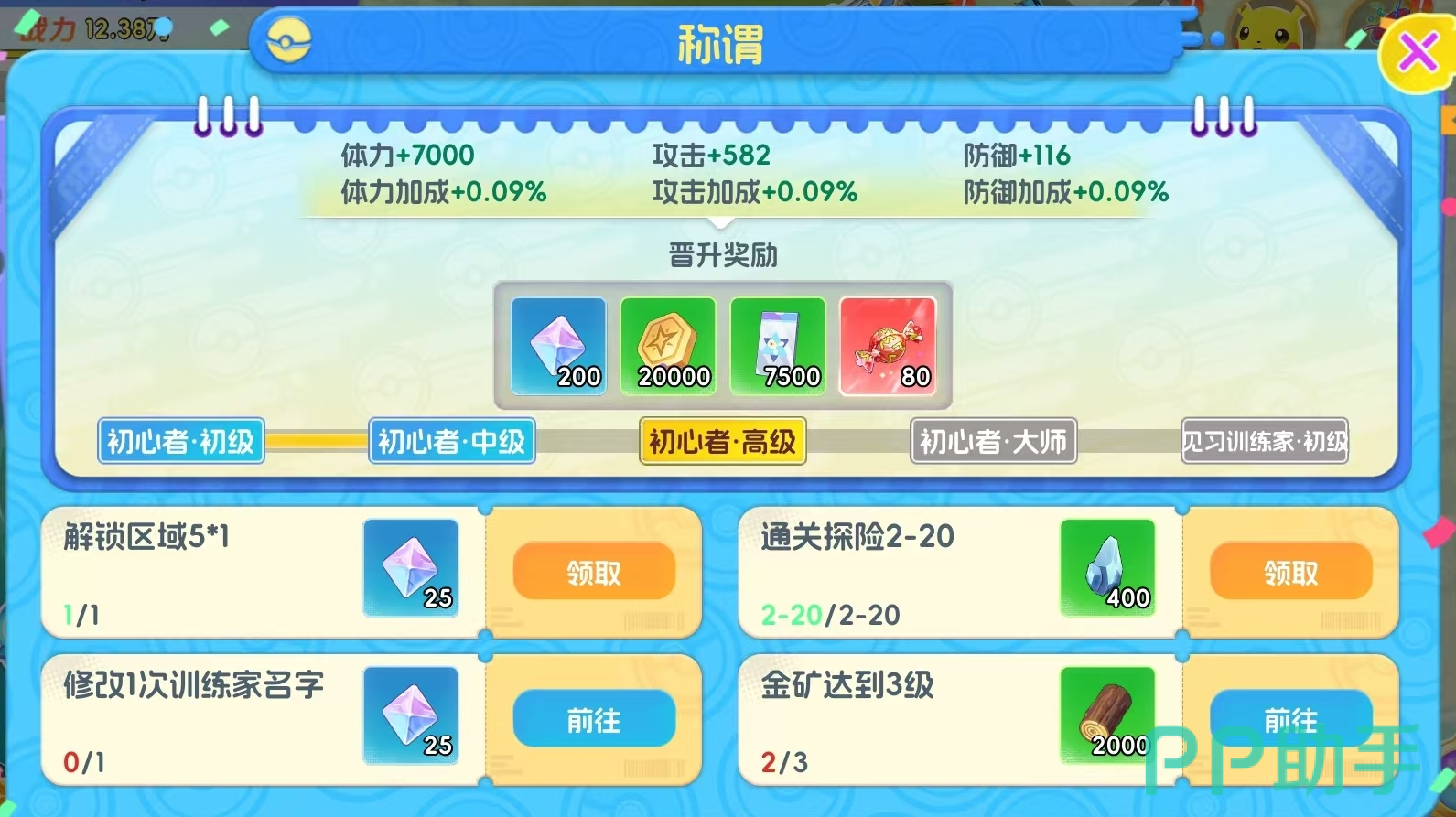 称谓晋升:首日须完成全部前置任务,晋升至【初心者·高级】,激活全队属性增益。