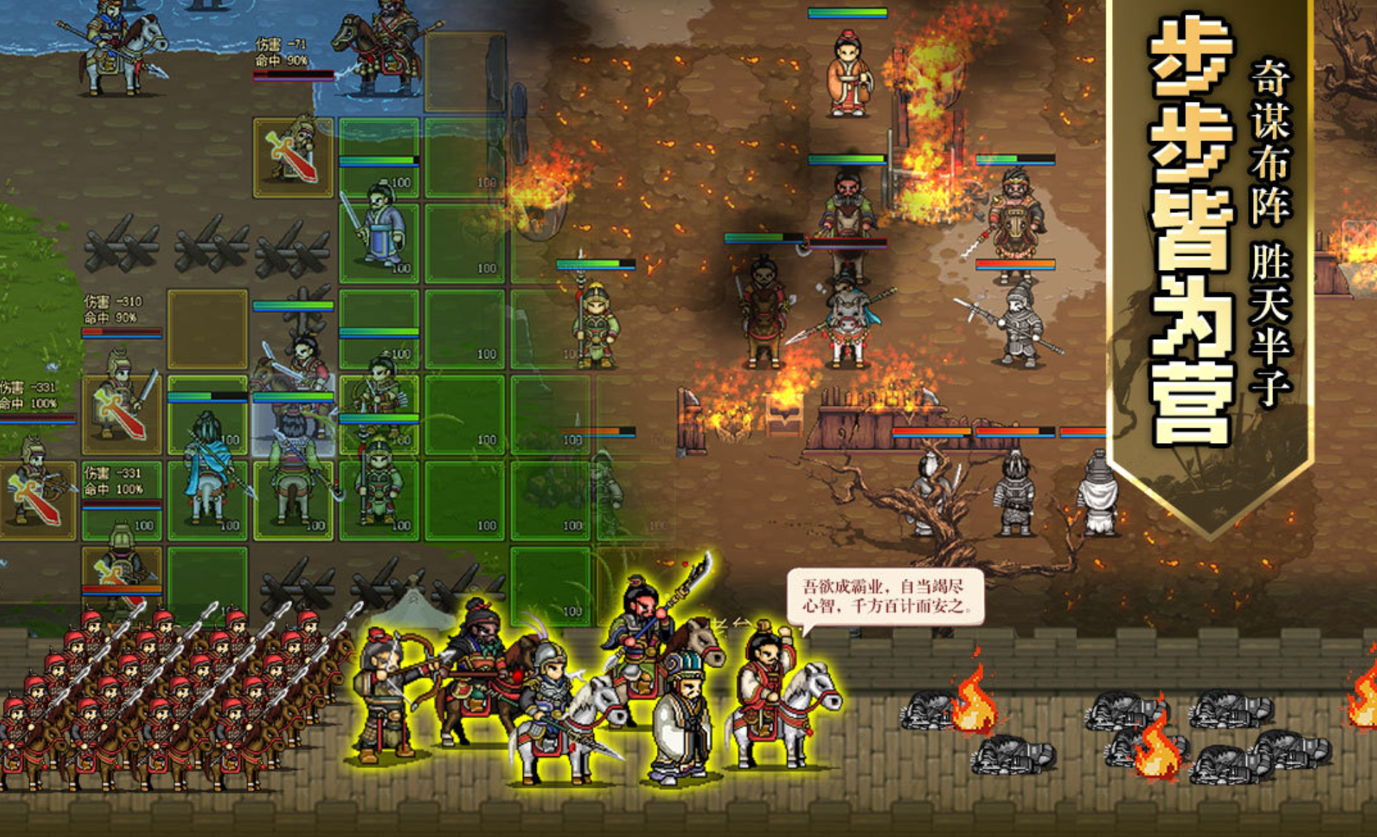 融合古典历史语境与现代战棋逻辑,引入时辰更替、天气变化与地形属性等动态战场要素——例如冰雪环境削弱火系技能效果,昼夜轮转改变视野与行动效率。兵种克制关系与武将特性深度耦合,装备锻造与资质培养构成双重成长轴。通关后开放高难度周目挑战,多结局架构基于关键选择层层铺陈,兼顾策略厚度与重玩驱动力,是像素风战棋品类中的成熟代表作。