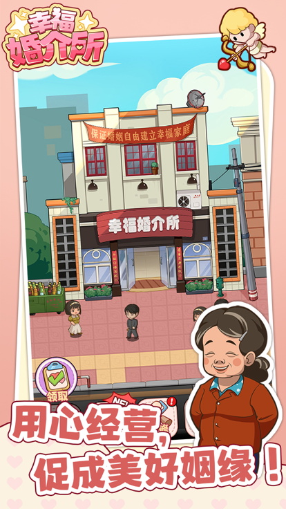 本作采用模拟经营+恋爱养成双线结构。玩家经营一家婚介机构,需完成客户接待、性格画像分析、双向匹配建议、约会方案定制等全流程服务。成功促成关系后可获得佣金,用于店铺扩建、设施升级(如增设咖啡角、摄影棚)、员工招募(含红娘顾问、活动策划师)等功能拓展,逐步构建专业化婚恋服务平台。